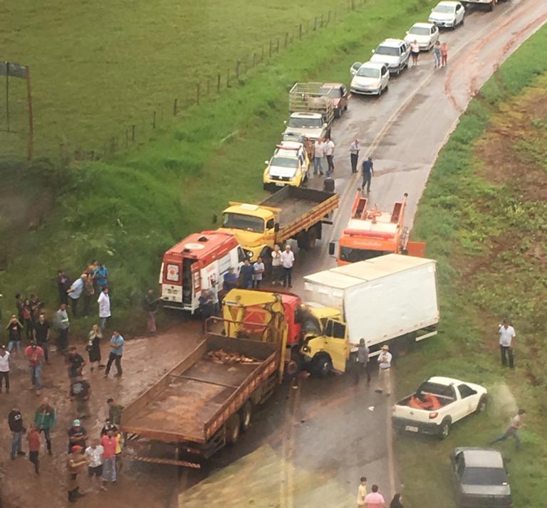O acidente envolveu dois caminhões. A vítima de um dos veículos ficou gravemente ferida e presa às ferragens. A equipe do serviço aeromédico em parceria com o Serviço de Atendimento Móvel de Urgência (SAMU 192) de Ubiratã e bombeiros de Campo Mourão realizaram o socorro da vítima.