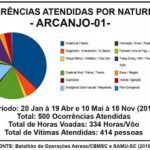 No final do mês de novembro de 2008, em função das fortes chuvas, vários Municípios catarinenses decretaram situação de emergência ou calamidade pública, onde ocorreram 135 (óbitos) e milhares de desabrigados ou desalojados, o que levou o CBMSC e demais Órgãos da Segurança Pública e Defesa Civil a desencadearem a “Operação Arca de Noé”, com o propósito de organizarem as ações de socorrimento público.