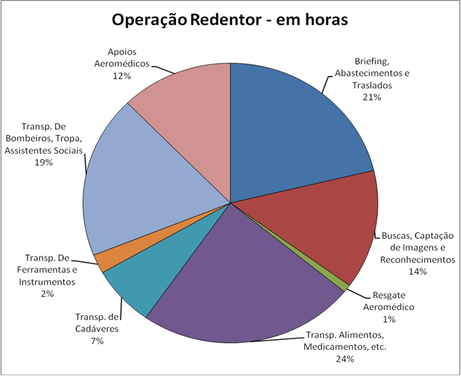 – 17 voos de reconhecimento, buscas e identificação de locais;