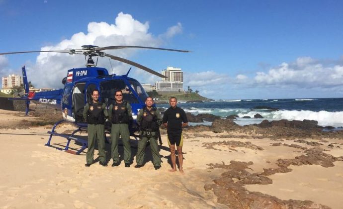Bahia – O Grupamento Aéreo (GRAER) da Polícia Militar realizou na tarde desta quarta-feira (2) o salvamento de um banhista que se afogava na praia da Paciência, bairro do Rio Vermelho em Salvador. Jéferson Moreira Lopes dos Santos, 23 anos, foi ajudar uma amiga e não conseguiu sair do mar, sendo arrastado pela correnteza.