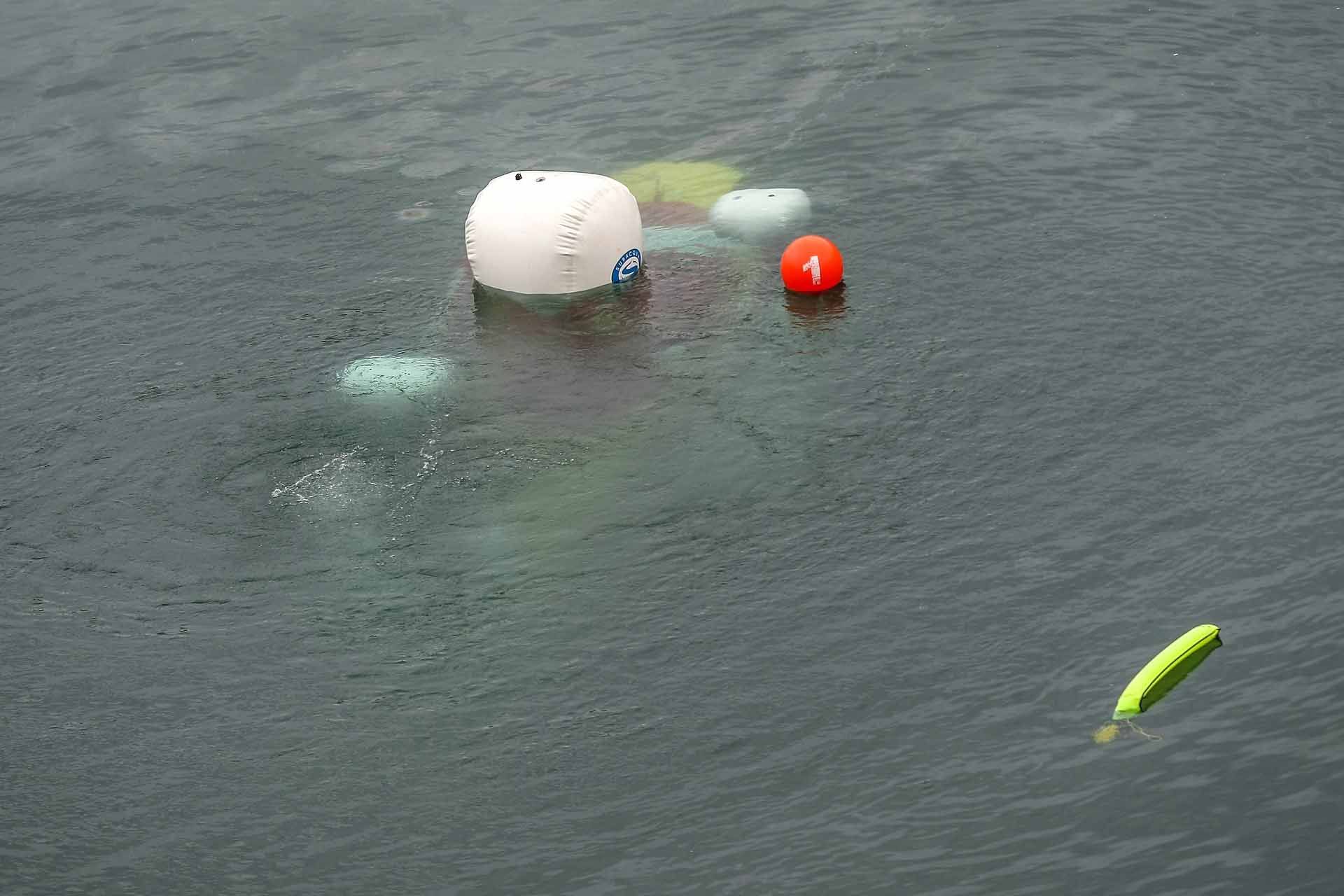 Remoção de helicóptero que caiu durante uma operação de combate a incêndios, numa lagoa no interior de uma pedreira em Lamoso, Paços de Ferreira