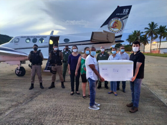 A distribuição das vacinas está sendo realizada com apoio das aeronaves da Polícia Militar, Polícia Civil, Corpo de Bombeiros Militar e veículos das Secretarias Municipais de Saúde (SMS’s), que saem da Regional com os imunizantes para as respectivas cidades.
