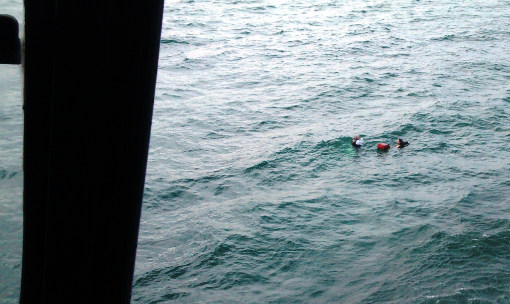 A aeronave fez a aproximação à baixa altura e a equipe se comunicou por meio de gestos com as vítimas, a fim de tranqüilizá-las. Em seguida os dois Guarda-Vidas foram lançados ao mar e abordaram os amigos que não apresentavam nenhum trauma aparente, apenas o senhor Virgílio, de 65 anos, estava iniciando um quadro de hipotermia, visto o tempo em que estava dentro d’água.