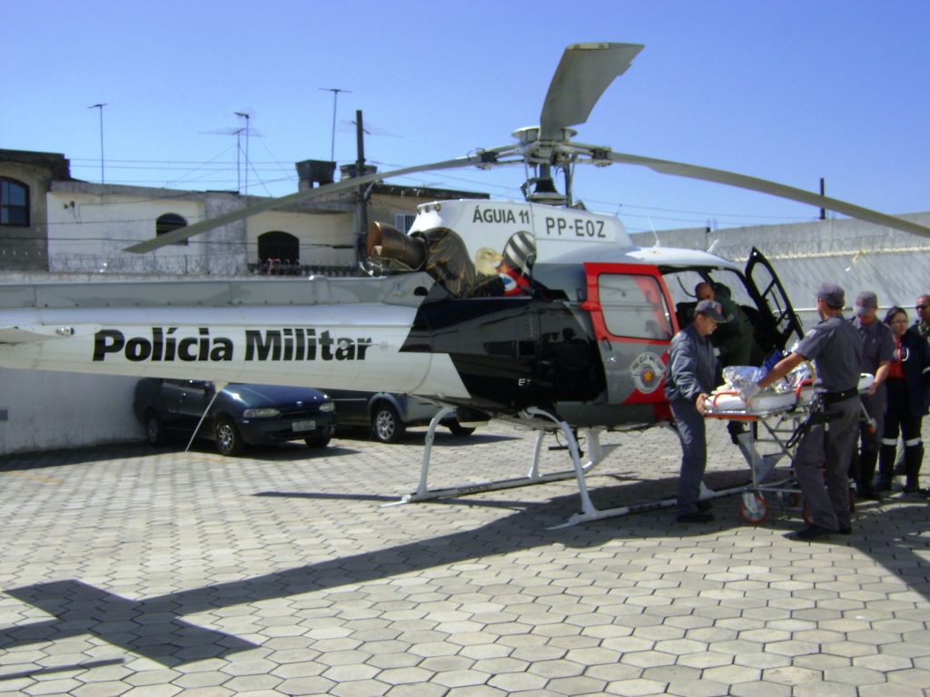 O Águia 11 pousou no estacionamento da Loja Mariza, a uma quadra do acidente, e ficou no chão cerca de 20 minutos. Após conduziu a vítima ao Hospital das Clínicas com suspeita de tetraplegia. O tempo gasto pelo helicóptero Águia 11 até o hospital foi de sete minutos.