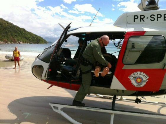 O fato, testemunhado pela tripulação da escuna Mykonos, foi comunicado à central do Corpo de Bombeiros de Ubatuba, que imediatamente acionou o apoio do helicóptero da Polícia Militar do Estado de São Paulo.
