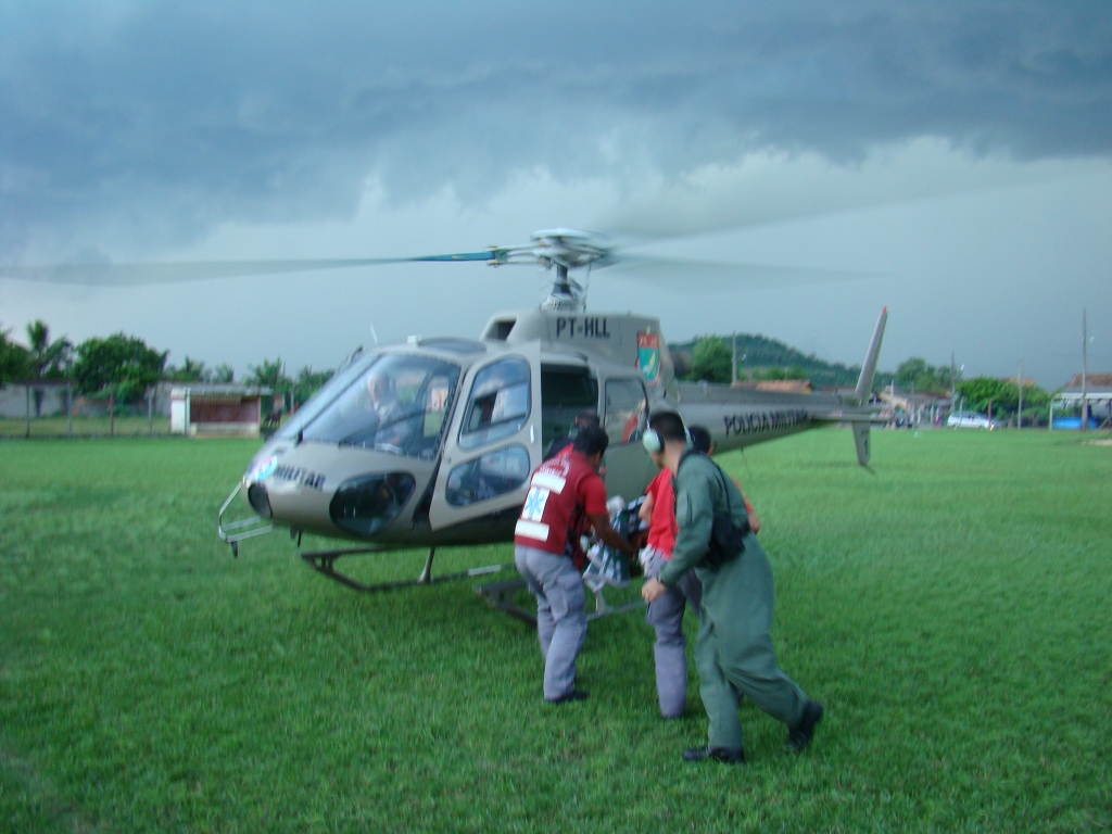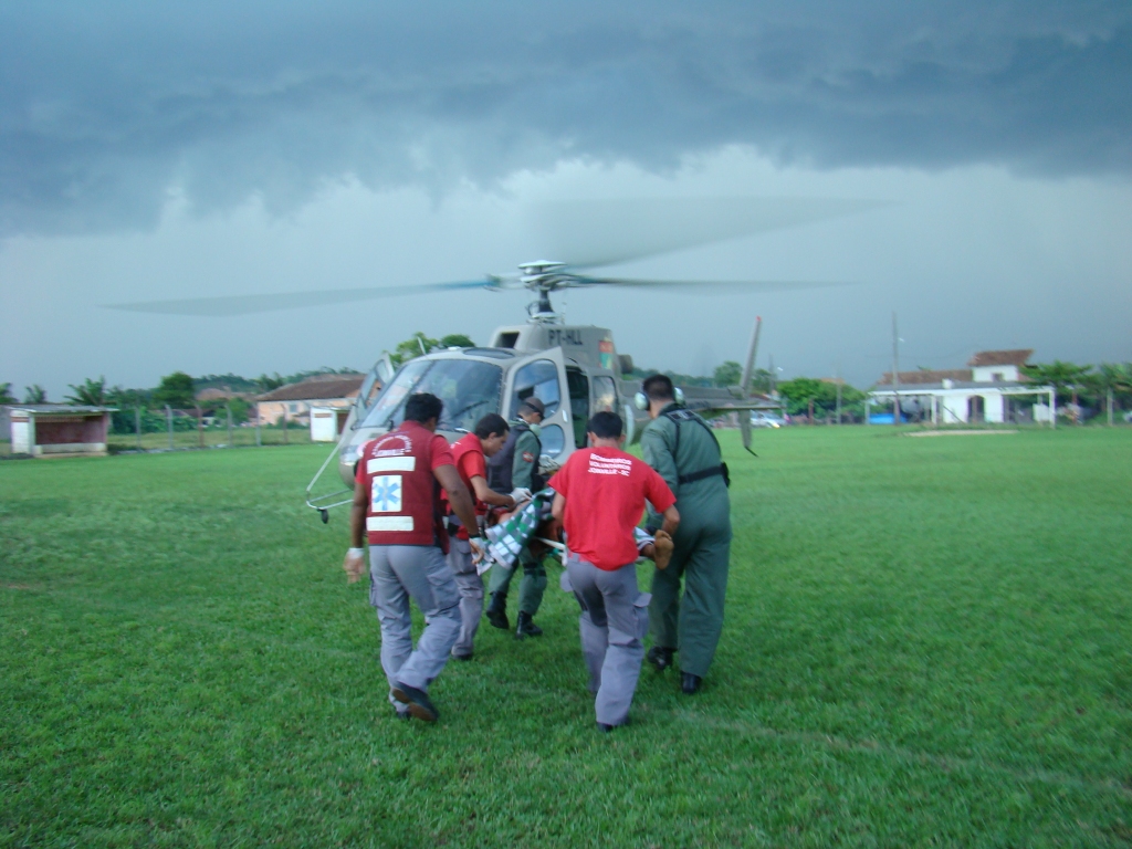 O paciente estava inconsciente e instável e muito agitado. Após deixar o paciente no centro de referência o helicóptero do BAPM retornou, ao bairro da tentativa de homicidio com intuito de realizar buscas ao possivel agente do crime, juntamente com as viaturas da aerea.