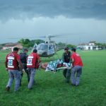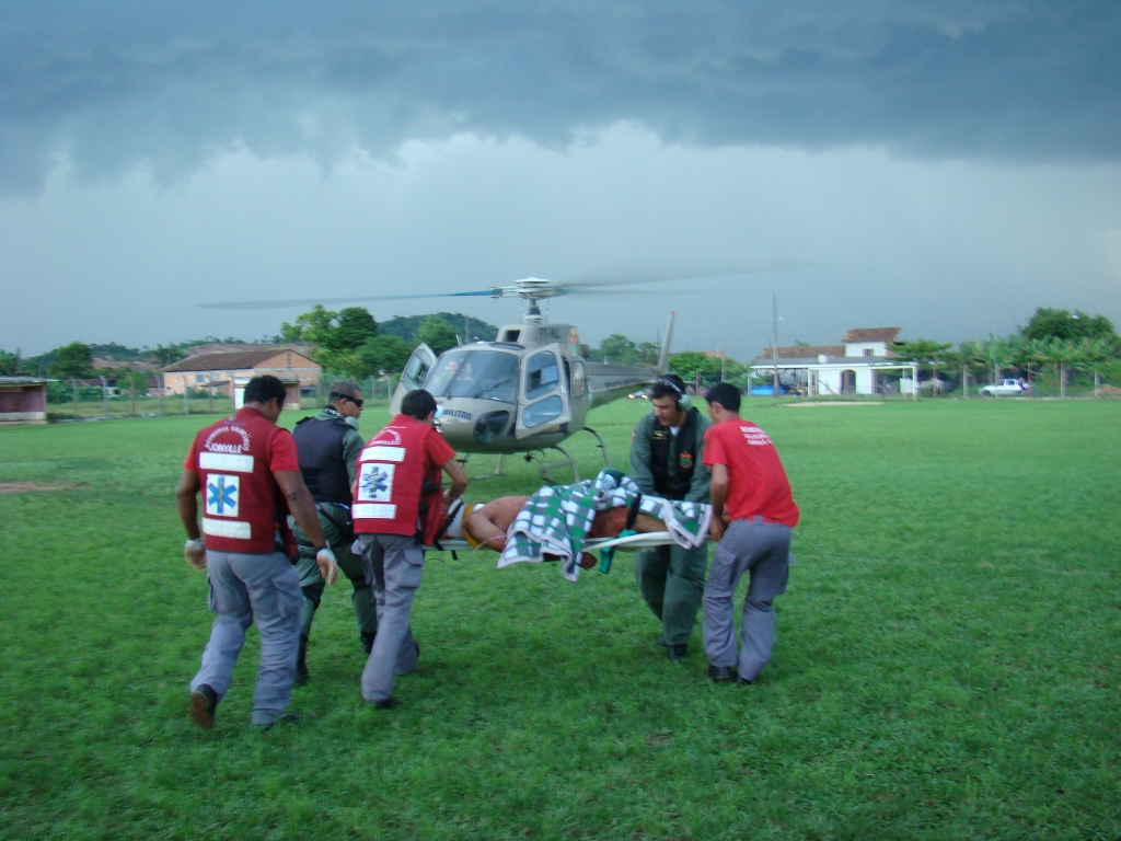 Pela gravidade dos ferimentos, o jovem precisou ser transportado ao hospital pelo helicóptero Águia da Polícia Militar. Em três minutos a aeronave chegou ao local. Pousou em um campo de futebol e transpostou a vitíma ao Hospital São josé.