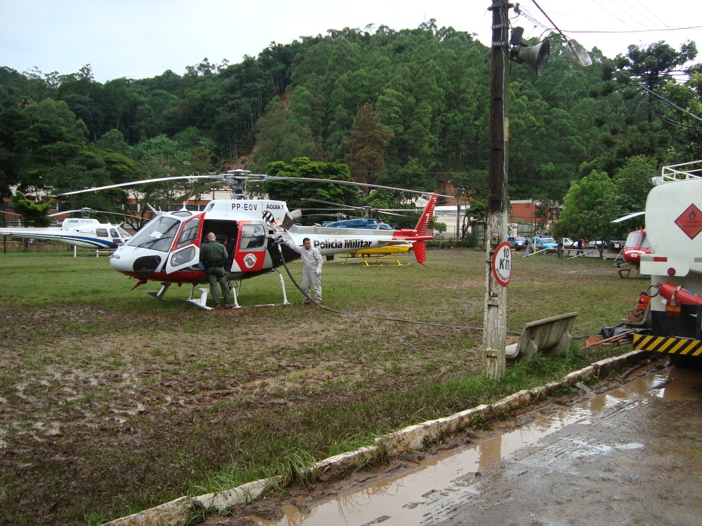 O GRPAe da Polícia Militar de São Paulo realiza apoio humanitário na região serrana do Rio de Janeiro. O GRPAe enviou dois Águias, o 7 e o 10.