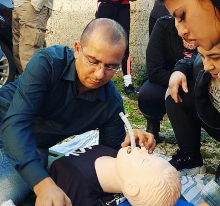 Durante a aula, que aconteceu no aeroporto Bacacheri, Curitiba, foram realizadas práticas de restrição de movimento de coluna com a maca a vácuo, passagem de máscara laríngea e intubação endotraqueal.