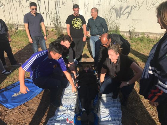 A prática faz parte da disciplina sobre “Assistência de Transporte Pré e Pós-Voo ao Paciente Politraumatizado“, ministrada pelo Professor Nelson Augusto Mendes. Nas aulas são abordados assuntos sobre os novos protocolos de Movimento da Coluna Vertebral (RMC) e as últimas atualizações dos protocolos de PHTLS, ATCN e ATLS.