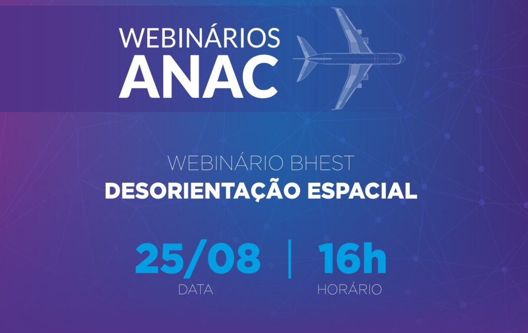 A Agência Nacional de Aviação Civil (ANAC) promoverá o “Webinário – BHEST sobre Desorientação Espacial”, às 16h, no dia 25 de agosto. Serão discutidos os temas Desorientação Espacial nas Operações Offshore; Desorientação Espacial: Aspectos Fisiológicos; e Desorientação no Acidente Aeronáutico – Estudo de Caso.