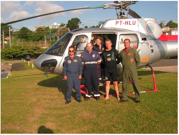 A aeronave aproximou-se efetuando um vôo de baixa altura, e nesta condição, foi embarcada a vítima e a tripulação, deslocando-se em seguida até o heliponto do Grupo de Busca e Salvamento do Corpo de Bombeiros Militar em Florianópolis, entregando a vítima a Guarnição do ASU 103 que transladou a mesma até o Hospital Celso Ramos.