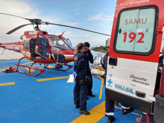 Após atendimento médico pela equipe do Arcanjo, a vítima foi estabilizada e conduzida ao heliponto da Av. Beira-mar Norte, de onde foi transladado pela unidade terrestre do SAMU, ao Hospital Celso Ramos.