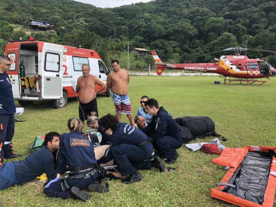 Santa Catarina – Por volta das 17h45 de terça-feria (30), a equipe aeromédica do helicóptero Arcanjo 01 do Corpo de Bombeiros foi acionado para atendimento de um homem que sofreu queda de uma altura de 8 metros em uma cachoeira na Costa da Lagoa, em Florianópolis.