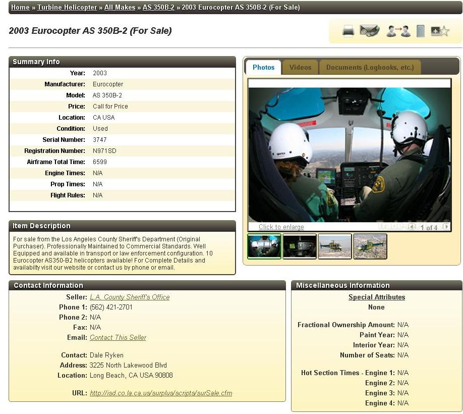 O exemplo mais marcante foi feito pelo Los Angeles County Sheriff’s Department, além de anunciar a efetivação da compra de 12 novas aeronaves AS350, com opção futura de aquisição de mais duas, recentemente tornou pública em classificados a venda de sua antiga frota.