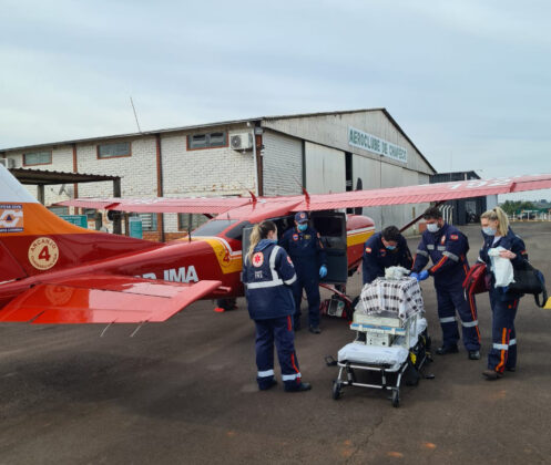 Após o nascimento, o bebê ficou internado na Unidade de Tratamento Intensivo (UTI) do Hospital Regional do Oeste, em Chapecó. A transferência para o Hospital Infantil Jesser Amarante, em Joinville, foi realizada com o avião Arcanjo 04.