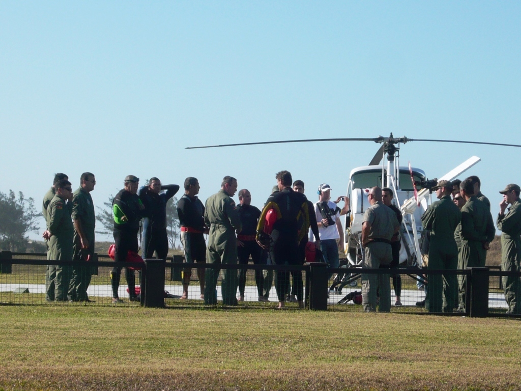 Os Tripulantes Operacionais realizaram salto da plataforma de pesca na parte da manhã e na parte da tarde realizou-se treinamento na praia de Xangrilá com apoio do CEFAER – Centro de Formação Aeropolicial da Brigada Militar, no qual foi utilizado um helicóptero modelo Schweizer 269C-1 para lançamento dos tripulantes ao mar a uns 1.800 metros da praia.