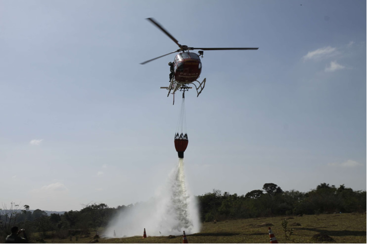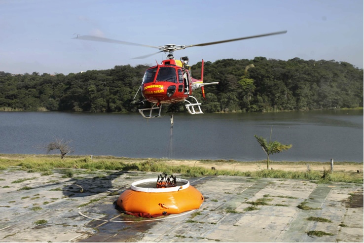 O treinamento foi realizado no Centro de Treinamento Metropolitano (CETREME) do CBMMG, e teve como objetivo principal o lançamento e captação de água com o equipamento Bambi-Bucket.