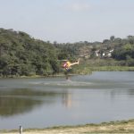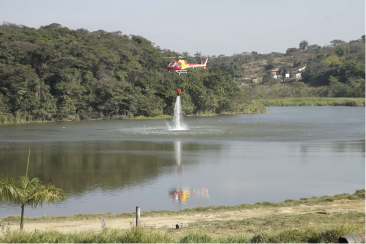 Os integrantes da Esquadrilha Arcanjo treinaram a capitação de água em um manancial e em reservatório, sendo o lançamento feito em uma área contendo 15 cones alinhados, simulando uma linha de fogo.