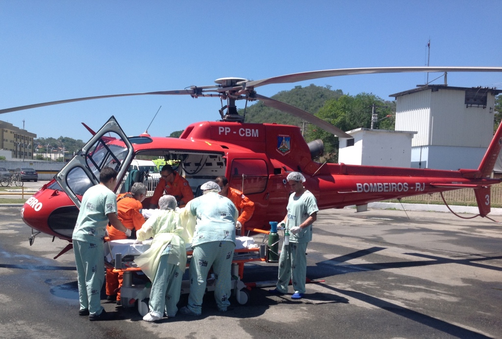 Rio de Janeiro – A tripulação do “BOMBEIRO 03” do Grupamento de Operações Aéreas – GOA do Corpo de Bombeiros realizou um transporte inter-hospitalar – TIH de duas crianças vítimas de atropelamento de trem no bairro da Penha no dia 26 de dezembro.