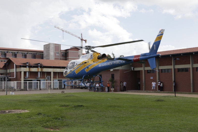O helicóptero da Secretaria de Segurança Pública (SSP) foi acionado e retirou a vítima do local. Foto: Emerson Silva.