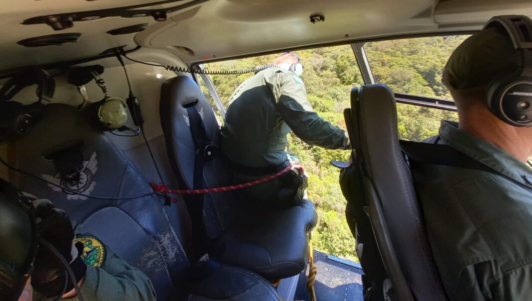 Segundo a PM, a vítima precisou ser retirada com auxílio do helicóptero Falcão 03. O homem sofreu fratura de tornozelo e o primeiro atendimento foi realizado pelo Grupo de Operações de Socorro Tático (GOST) do Corpo de Bombeiros.