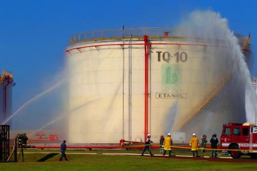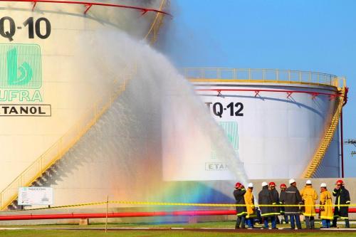 Em cinco minutos, os brigadistas da usina já haviam chegado em quatro caminhões-pipa e começado a apagar o fogo do tanque em chamas, e dos demais ao redor para prevenção. Ao mesmo tempo, um sistema fazia o resfriamento dos tanques, jorrando água do topo. As equipes do corpo de bombeiros chegaram em 15 minutos, a princípio com três caminhões.