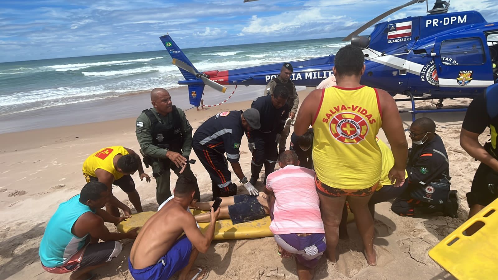 Na praia, as mulheres, vítimas de afogamento, foram retiradas da água e na faixa de areia foram atendidas inicialmente por bombeiros e por uma equipe do Serviço de Atendimento Móvel de Urgência (SAMU). Uma das vítimas estava em estado crítico e foi levada para o Hospital do Subúrbio no helicóptero Guardião 01 do GRAER.