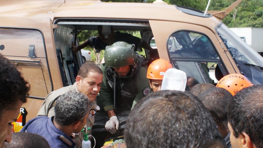 Após definição de prioridades pelos médicos do SAMU, três vítimas foram socorridas no helicóptero da PMBA para o Hospital Geral do Estado.