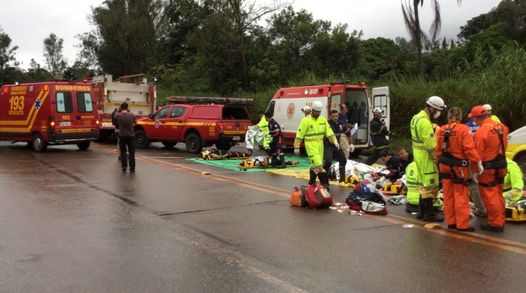 Oito viaturas terrestres com 28 bombeiros participaram do resgate. O SAMU, a concessionária da BR-040 e ambulâncias locais auxiliaram no socorro das vítimas.