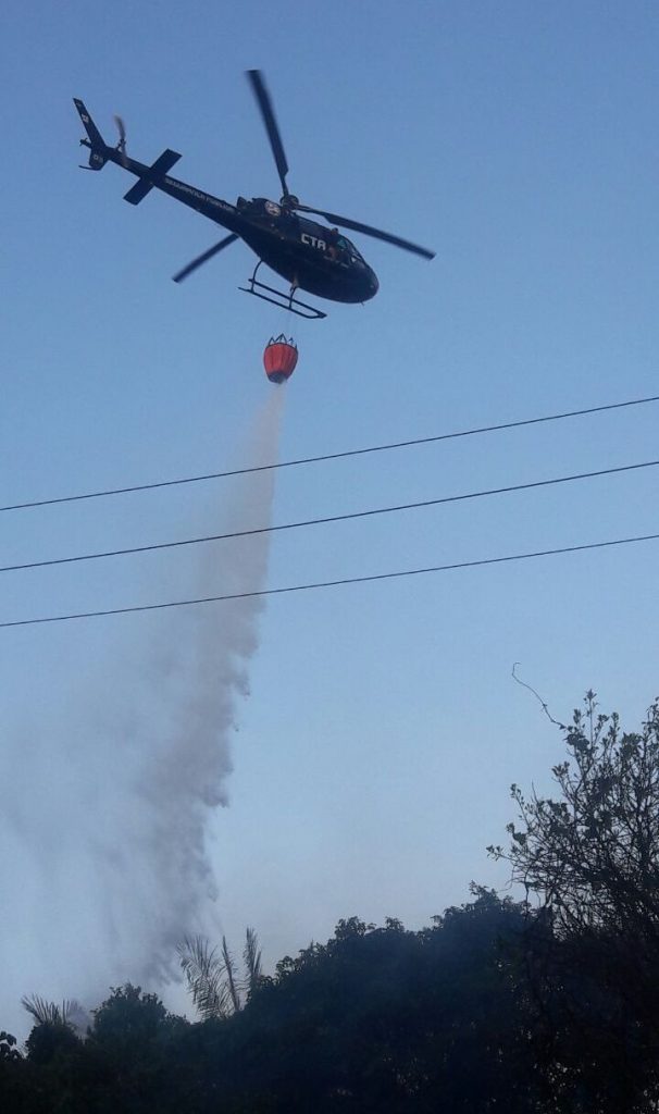 Centro Tático Aéreo apoia bombeiros em operação de combate à incêndio florestal na avenida litorânea