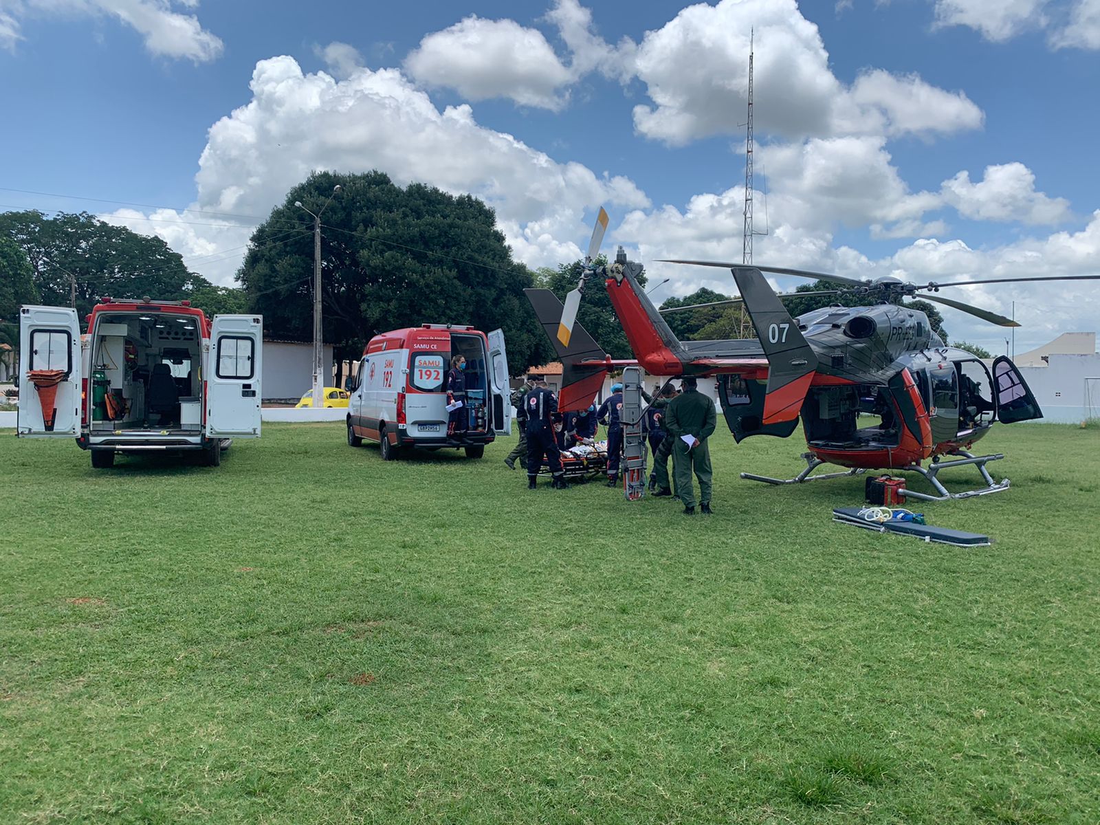 O SAMU realizou o transporte terrestre das vitimas até onde o helicóptero aguardava. As vítimas foram embarcadas na aeronave e todos os procedimentos médicos necessários foram realizados pela equipe da CIOPAER/SAMU. Foram levadas de helicóptero para o Hospital Regional do Cariri, em Juazeiro do Norte.