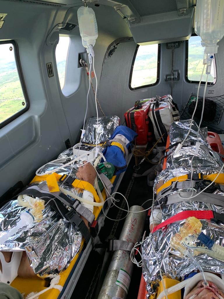 O helicóptero Fênix 07 (EC145) foi acionado depois que duas pessoas se envolveram em um acidente com motocicleta, com queda em barranco. As vítimas tiveram ferimentos graves e receberam suporte médico das equipes do SAMU durante todo o voo entre as cidades de Acopiara e Juazeiro do Norte.