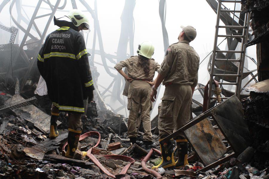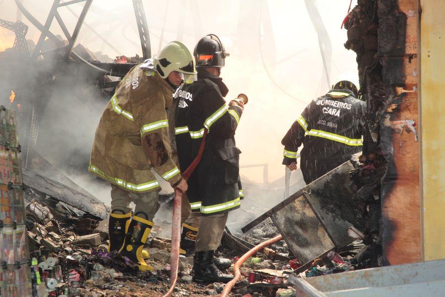 Bombeiros tiveram dificuldade para apagar o fogo, que foi controlado por volta de 9h30min. Ainda assim, os bombeiros continuaram os trabalhos de rescaldo, com ajuda de um helicóptero do Coordenadoria Integrada de Operações Aéreas (Ciopaer), para contralar pequenos focos de incêndio no depósito. A parte de trás do depósito e uma parede da loja desabaram durante o acidente.