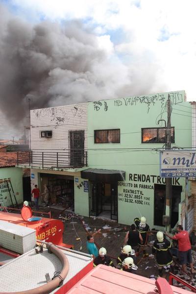 Ceará – Um incêndio de grandes proporções atingiu, na manhã desta quinta-feira, 07/06, o depósito de uma fábrica de tecidos e aviamentos situado no bairro Montese, em Fortaleza. O fogo que se iniciou na fábrica ainda se alastrou para uma loja que vendia os produtos na parte da frente do local.