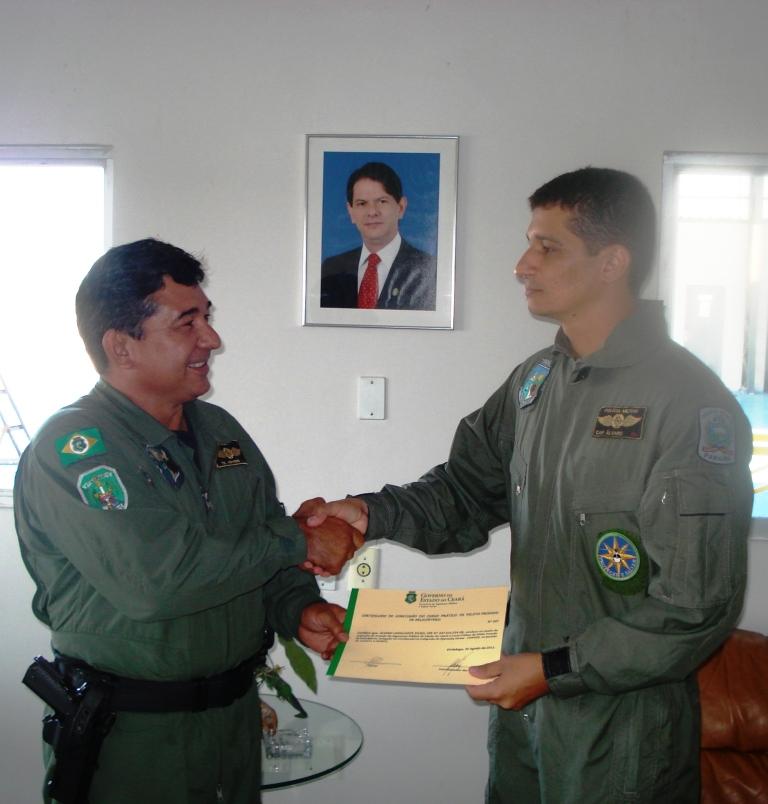 O capitão PMPB Álvaro Cavalcante Filho, da Polícia Militar da Paraíba, concluiu com aproveitamento o Curso Prático de Pilotagem na modalidade Piloto Privado de Helicóptero na Coordenadoria Integrada de Operações Aéreas no Estado do Ceará, com a devida qualificação em vôo realizada na aeronave tipo AS 350 (esquilo), o cheque ( prova prática) aconteceu no dia 30.08.11.