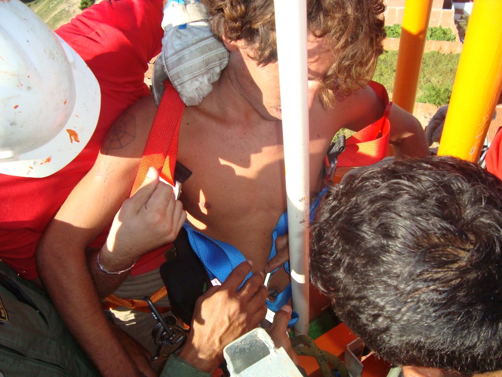 O jovem não apresentava sinais de lucidez e foi içado pela aeronave juntamente com um tripulante, após uma dificil manobra de aproximação à torre, tendo sido trazido ao solo em segurança. A maior dificuldade da operação residia na possibilidade de os cabos usados no resgate ficarem presos à torre, comprometendo a segurança da aeronave, das demais pessoas envolvidas na operação e dos diversos curiosos que se encontravam no local.
