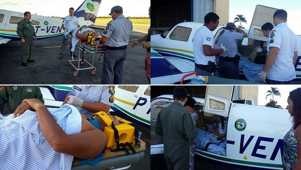 Na sequência um helicóptero do IBAMA transladou a vítima até a cidade de SINOP-MT, onde uma tripulação do Águia 07 acompanhada de um médico da PM/MT realizou todos os preparativos para o embarque do Sub/Ten PM Henrique e translado até Cuiabá-MT.