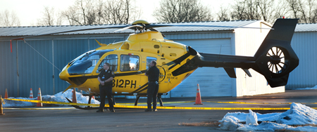 O helicóptero de transporte médico baseado no Aeroporto Regional de Shenandoah Valleydo pousou em segurança no aeroporto. Ninguém se feriu a bordo do helicóptero, um Eurocopter EC-135 registrado pela PHI Air Medical Group, proprietário da aeronave AirCare 5, segundo a polícia.