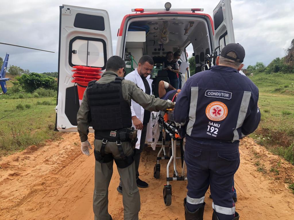 Após estabilização, o paciente de 43 anos, que estava na ambulância do SAMU de Itaparica, foi embarcado no helicóptero Guardião 05 e levado para o Hospital Municipal, onde segue com o tratamento.