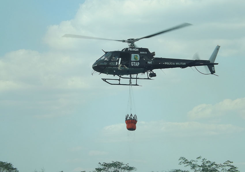 O helicóptero Esquilo foi utilizado para combater às chamas, em função do difícil acesso ao local do incêndio.