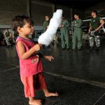 Para presentear as crianças, a equipe do Ciopaer entregou camisetas similares ao uniforme da tropa.
