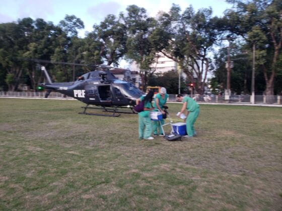 O órgão foi captado de um paciente internado no Hospital de Emergência e Trauma Senador Humberto Lucena no sábado (13). Às 16h24, o helicóptero da PRF decolou de João Pessoa e às 17h04 pousou no campo do Derby, em Recife, com o coração.