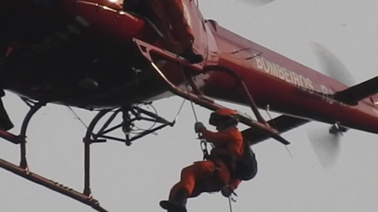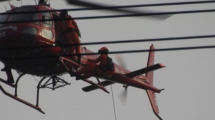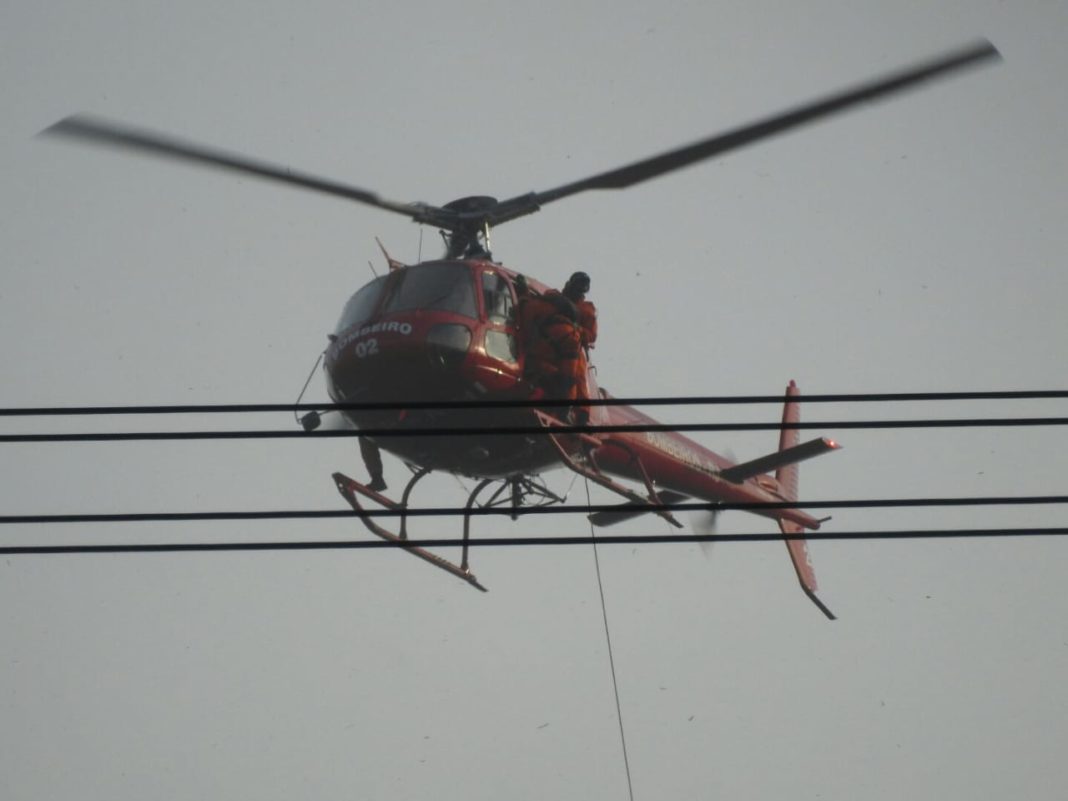 A equipe da aeronave também ajudou, utilizando o helibalde para a extinção do fogo. O equipamento empregado pelos bombeiros possui uma capacidade de 550 litros de água, é acoplado no gancho do helicóptero e a liberação da água é feita pelo piloto, orientado pelo tripulante.