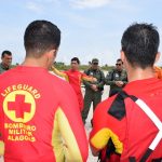 Para fechar os treinamentos foi realizada uma atividade simulada de salvamento no mar, na praia do Pontal da Barra, com o emprego do helicóptero Falcão 05, do Grupamento de Operações Aéreas (GOA), guarda-vidas e socorristas da corporação, além de integrantes do Samu.