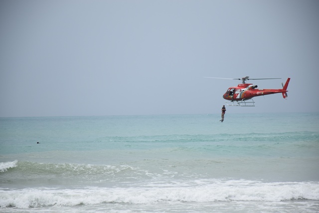 Início Corpo de Bombeiros de Alagoas realiza treinamento simulado de salvamento no mar com helicóptero Operações com aeronave reduzem o tempo resposta nos casos mais graves,. oto: André Luiz.