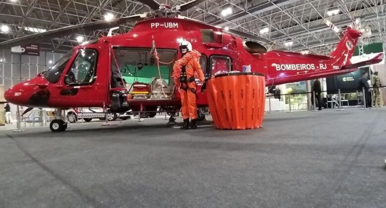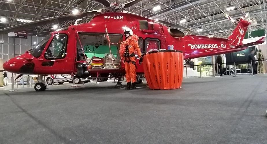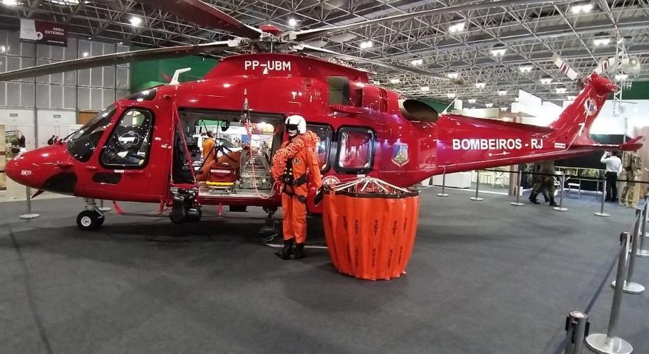 Em destaque no estande do Corpo de Bombeiros está o novo helicóptero Leonardo AW169, Bombeiro 07, matrícula PP-UBM, adquirido em janeiro de 2019 durante o período de intervenção federal. A aeronave chegou da Itália para ser apresentado na LAAD e reforçar a frota do Grupamento de Operações Aéreas (GOA). O bimotor comporta 2 pilotos e até 10 tripulantes e é capaz de operar por instrumentos, ampliando as possibilidades de socorro aéreo da corporação.
