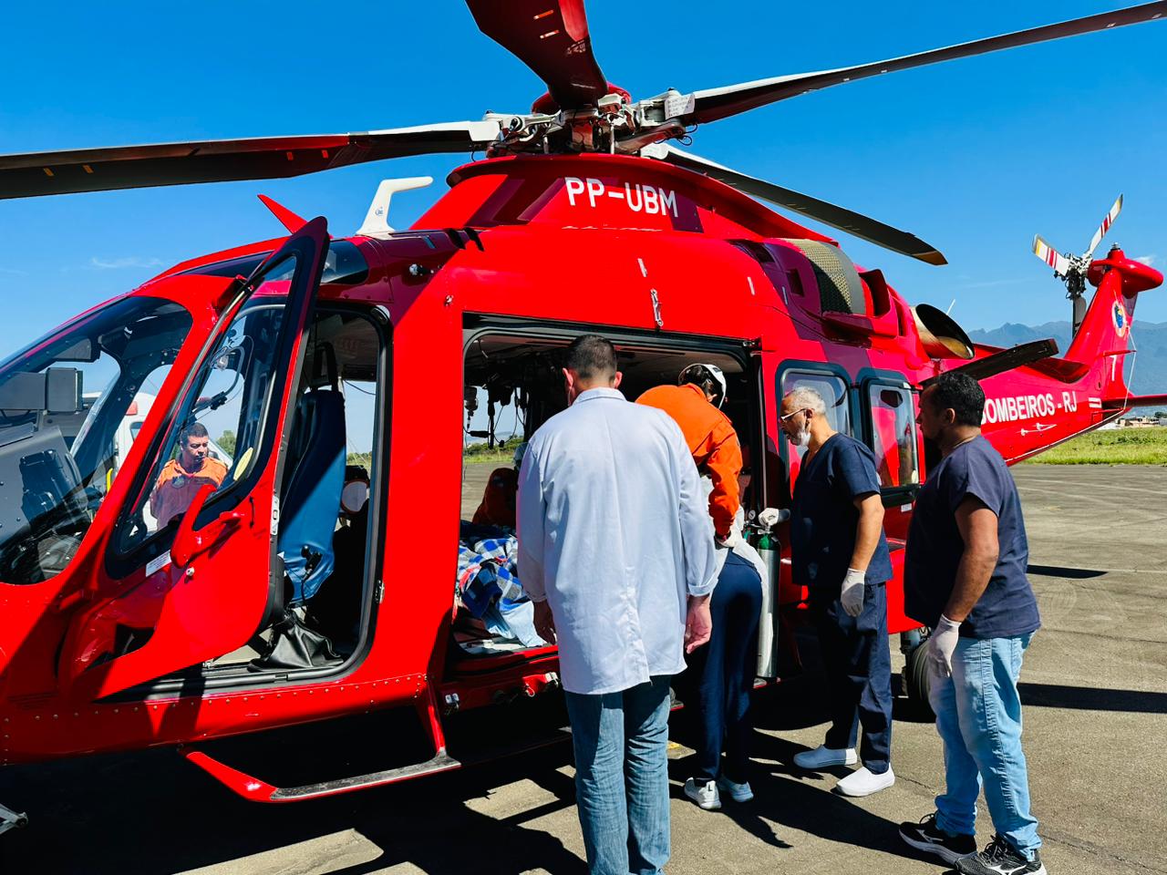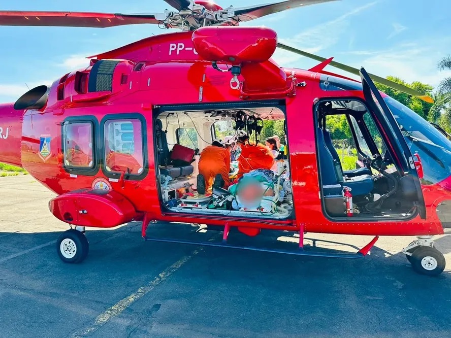 As duas vítimas foram transportadas simultaneamente do Hospital Municipal de Emergência Henrique Sérgio Gregori, no município de Resende, para o Hospital Estadual Alberto Torres, em Colubandê, São Gonçalo. O voo durou cerca de 50 minutos e contou com uma tripulação de cinco bombeiros militares, incluindo dois pilotos, um médico, um enfermeiro e um técnico de enfermagem.