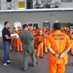 Ao final, 06 alunos que são destaques dentro do projeto foram escolhidos pelo Subtenente BM Sales, coordenador do Projeto, para realizarem um voo no helicóptero Águia 02.