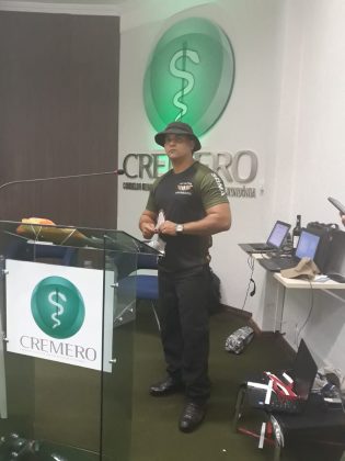 Rondônia – Representando o 7° Batalhão de Polícia Militar (7° BPM) e a convite do Conselho Regional de Medicina do Estado de Rondônia (Cremero), o policial militar Heitor Racanelli P. Contreiras integrou a equipe de instrutores do II Curso de Transporte Aeromédico Integrado da Região Norte realizado na última semana (21 a 24 de junho de 2018) em Porto Velho, que capacitou médicos, enfermeiros, técnico em enfermagem, socorristas, bombeiros e policiais.